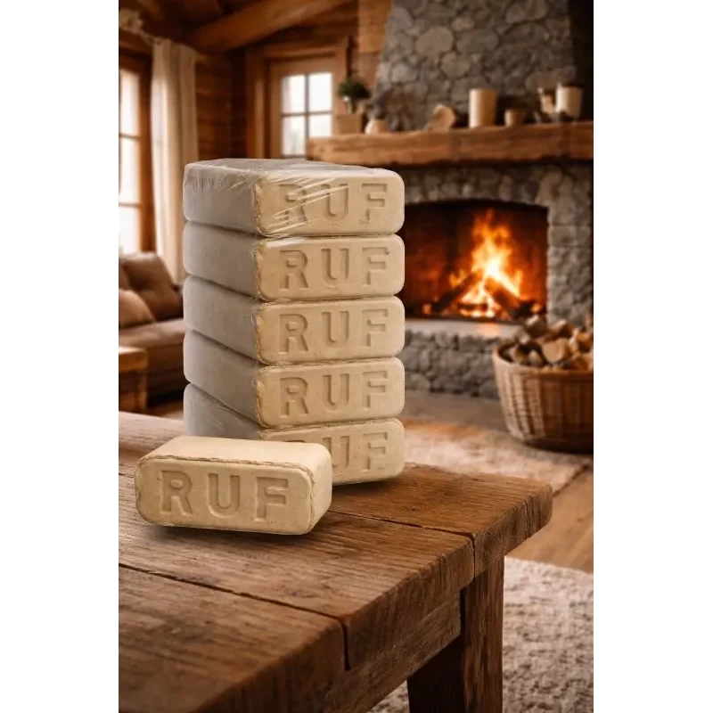 RUF-briketten zijn rechthoekige houtbriketten die onder zeer hoge druk worden geperst uit 100% schoon Eikenhoutzaagsel. Er worden geen bindmiddelen of chemicaliën toegevoegd. De naam “RUF” verwijst naar de persvorm en -techniek, die zorgt voor een compacte en uniforme briket. Deze briketten zijn gemaakt van eiken en meranti en essenhoutzaagsel en zijn 100% ecologisch, zonder lijm, kleefstoffen of andere chemicaliën. Ze zijn bijzonder geschikt voor kachels met een lange duur en open haard met een regelbare lucht toevoer.